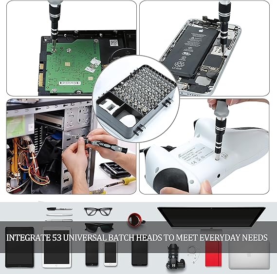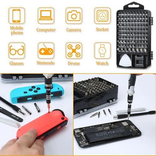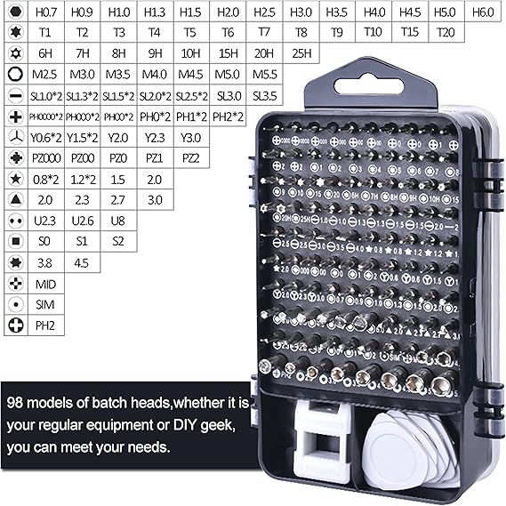 115 in 1, must-have small screwdriver game is equipped with 98 different points (Phillips, Flat, Torx, Torx Security, Pentalobe, Hexagon, etc.). ) and various opening tools to ensure that you have the most complete repair kit.