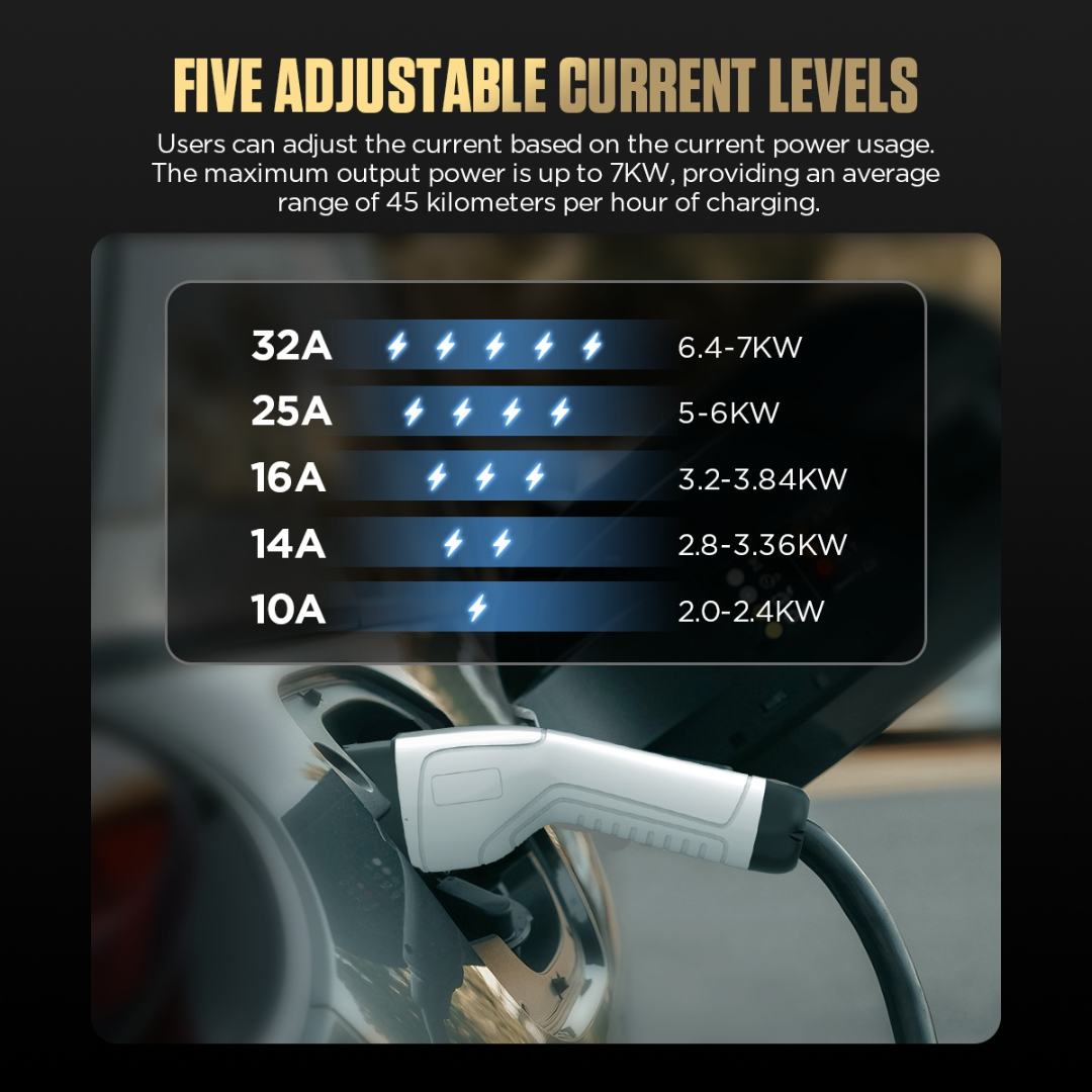 Multifunctional Display Screen:Â This product is equipped with a display screen, allowing you to adjust different current levels (8A/10A/13A/16A) directly on the screen.