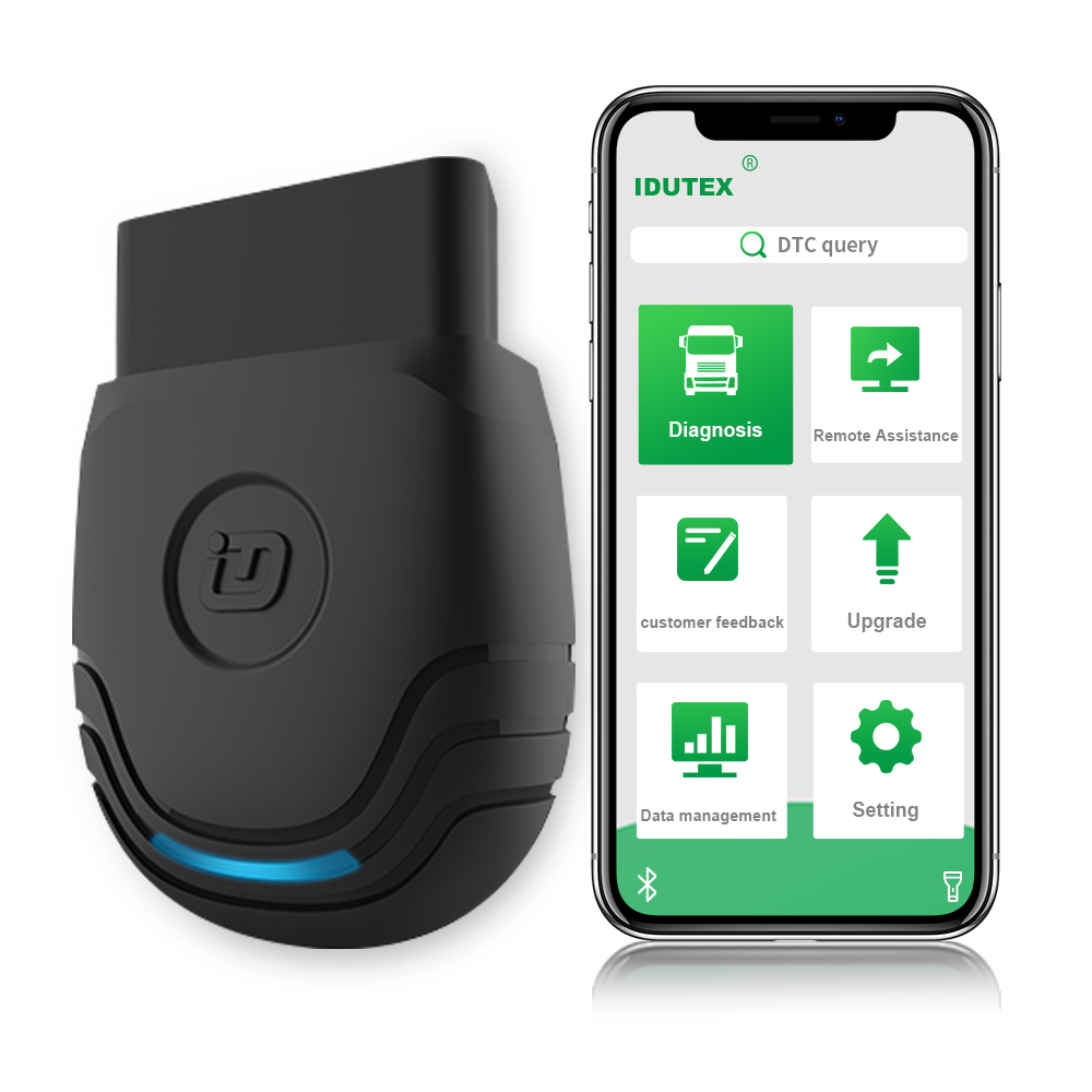 IDUTEX TPU300 is a OBDII scan tool based on android system works on commercial vehicles and cars, by connecting to your phone, any users can use the small VCI to easily read & erase trouble codes, check data list, system and vehicle info…etc. It includes 9/6/16 pin adapters for better communication with any kind of vehicle.